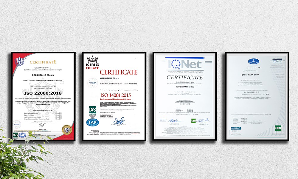 Uji Qafshtama ka këto certifikime